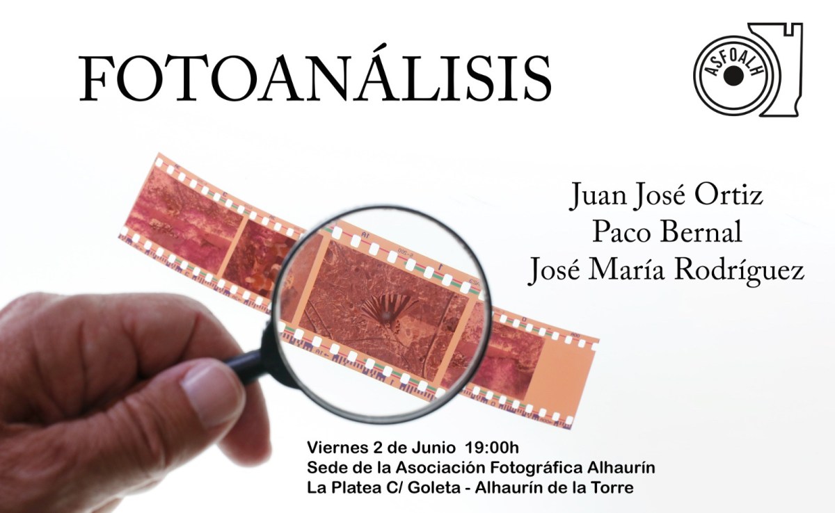 Ayer 2 de junio, nueva actividad abierta y de libre acceso de la Asociación Fotográfica de Alhaurín de la Torre a la que asistieron socios y socias en la que se analizaron 9 fotografías realizadas por José M. Rodríguez, Paco Bernal y Juan JO Soler. La finalidad de dicha sesión es mostrar cada fotógrafo su trabajo al resto y, tras una breve observación, que cada cuál exponga su opinión y criterio respecto a elementos destacables y aquellos que son mejorables.