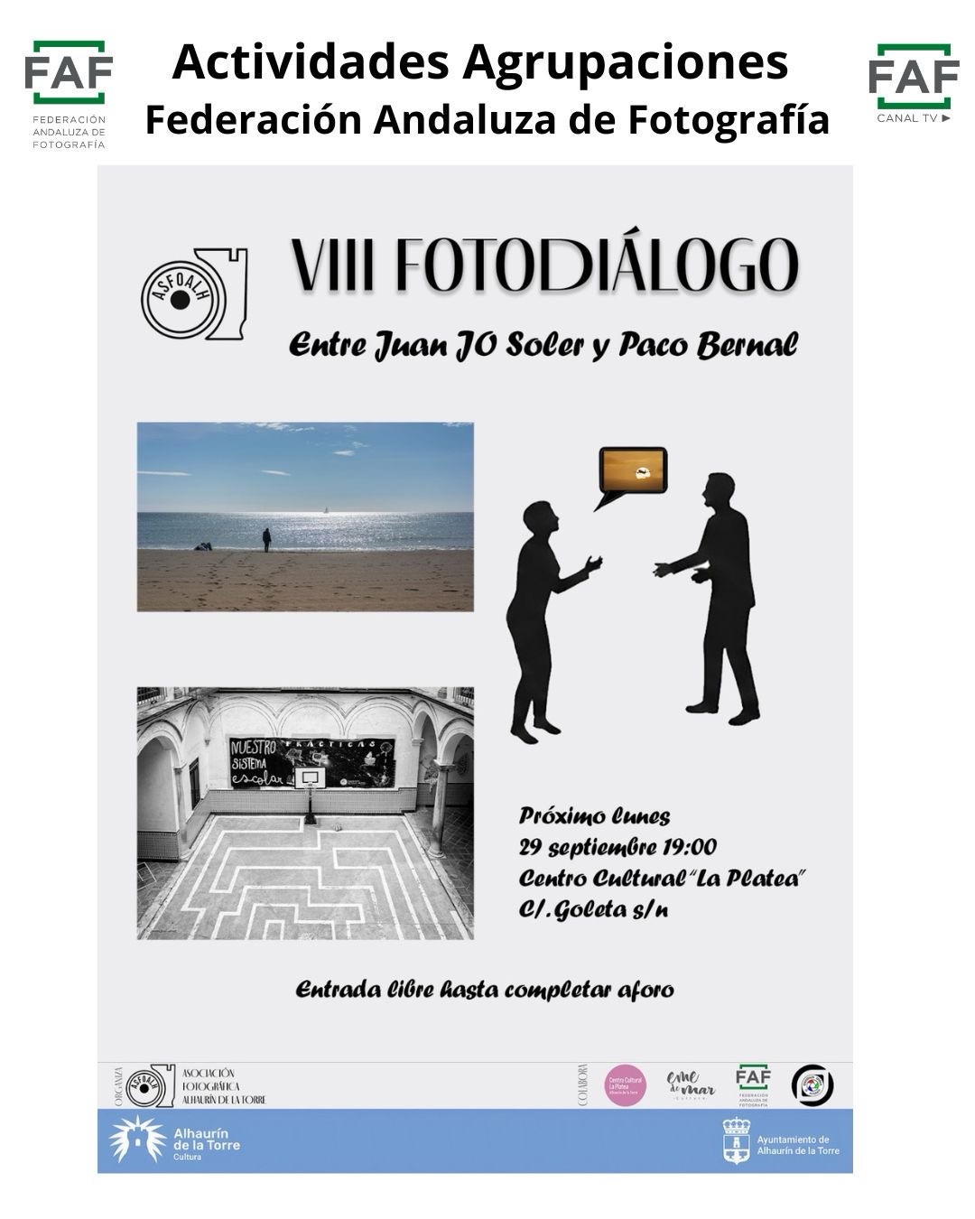 El próximo lunes 29 de septiembre a las 19:00 h te invitamos a disfrutar del VIII Fotodiálogo, un encuentro en el que los fotógrafos Juan JO Soler y Paco Bernal compartirán su visión y experiencia a través de la fotografía.