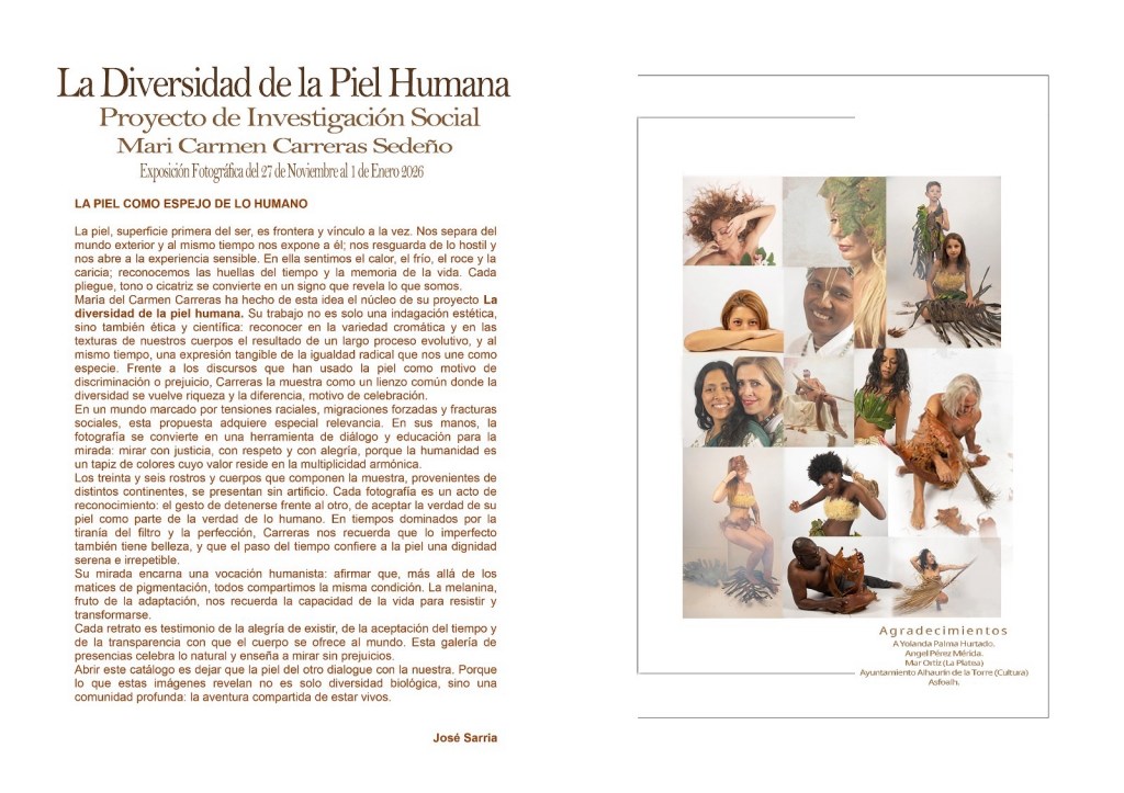 El Centro Sociocultural y de Artes La Platea de Retamar-Capellanía acoge desde el pasado jueves 27 de noviembre la exposición fotográfica ‘La Diversidad de la Piel Humana’ presentada por la fotógrafa María del Carmen Carreras Sedeño, miembro de Asfoalh. La muestra se puede visitar en el Centro La Platea Alhaurín de la Torre de lunes a viernes de 18:00 h a 19:30 h hasta el 30 de diciembre de 2025. Información al correo Carmelines16@gmail.com.