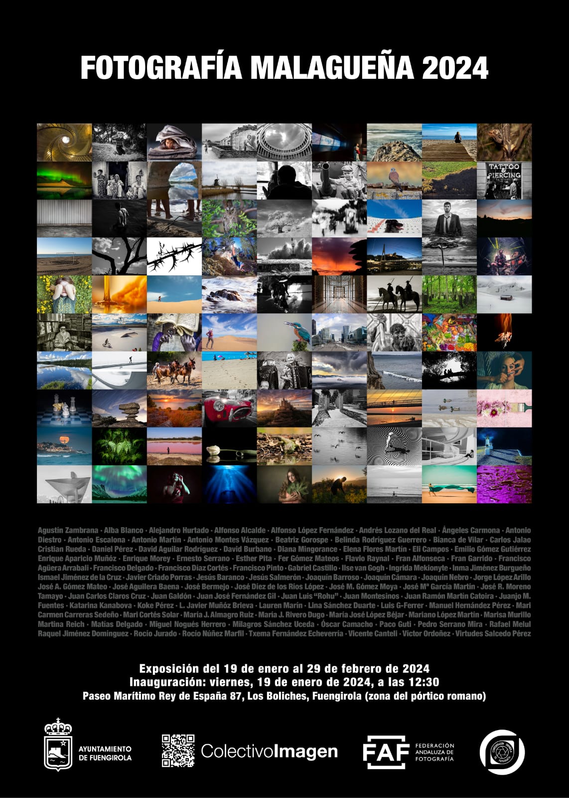 Cómo el año pasado, el Colectivo Imagen, en colaboración con el Ayuntamiento de Fuengirola, vuelve a organizar la exposición al aire libre denominada Fotografía Malagueña 2024 rindiendo homenaje a las fotógrafas y fotógrafos de Málaga miembros de distintas asociaciones de fotografía de la Provincia asociadas a la Federación Andaluza de Fotografía.