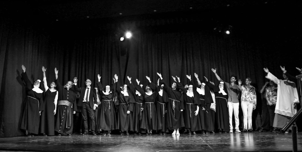 “Una monja de armas tomar” ha sido la obra elegida por los alumnos de la Platea como finalización de curso y nuestra asociación fue invitada a presenciar y fotografiar su preestreno. ¡¡Fantástico!! Un trabajo exquisito con una dedicación que roza la profesionalidad, quien haya tenido la oportunidad de ir a su estreno ayer viernes y quién pueda ir hoy sábado habrán tenido una brillante y divertida idea porque sus actore han puesto toda la carne en el asador ¡qué ilusión! Y qué orgullosos y orgullosas deben sentirse después de ver que han conseguido la meta propuesta. ¡¡Enhorabuena amigos y amigas!! Y muchas gracias a Mar por darnos esta magnífica oportunidad ¡¡Repetiremos!!